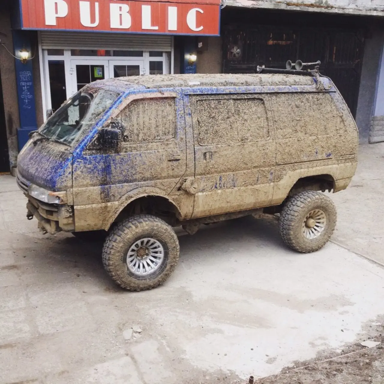 Был полностью разобран. Салон очищен (насколько это было возможно). Сделан бодилифт на 100 мм (металлические проставки). Установлен ДВС QD32ETI (ТНВД механический от TD27T). МКПП от Nissan Atlas 4wd + пониженная. Задний мост от Nissan Terrano c LSD (подвёрнут). Передняя независимая подвеска полностью удалена, её место занял мост со всеми тягами от TLC Prado 78. Амортизаторы TLC 80. Установлен интеркулер от Toyota Aristo. Изготовлена пневмосистема для подкачки и сигнала из компонентов КамАЗ и Toyota Crown. Вся проводка сплетена заново. Простенький шноркель. Четыре радиатора печки. Резина Federal Couragia m/t 33/12.5 R15. Колёсные арки порезаны.