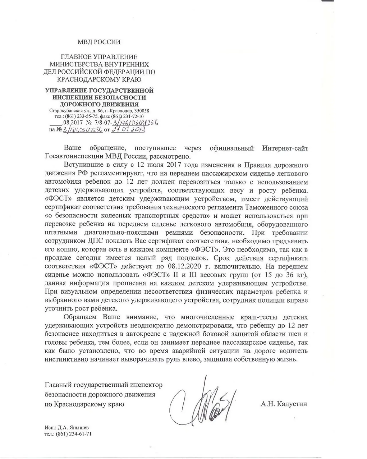 В Крыловское ГИБДД я написала два письма: с просьбой наказать товарища лейтенанта за то что он не знает ПДД и с требованием вернуть мне деньги.