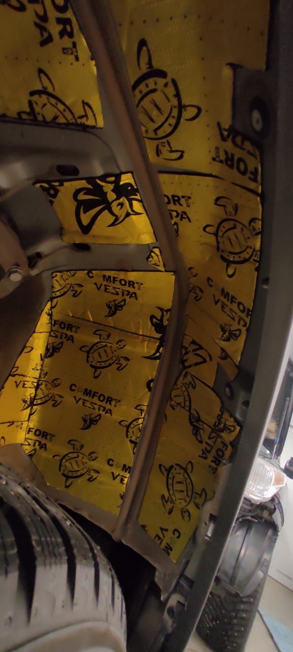 5. Отдельно была выполнена шумоизоляция задних колесных подкрылок с обработкой антигравийным слоем.